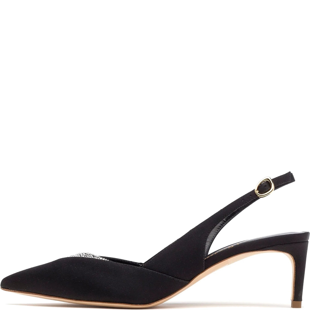 Lenarda is the 55mm heel mirror to Homai, the season’s new slingback. This beautiful, pointed toe shoe is completed with an asymmetrical ‘slash’ strass detail and an adjustable strap adorned with our ‘pebble’ buckle.