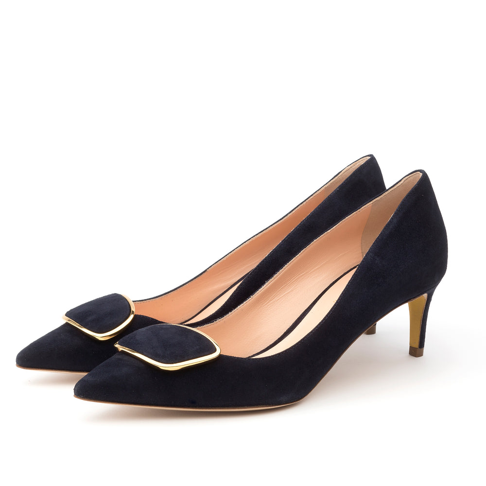 The collection would not be complete with our Nora pump. Elegant and versatile, this pointed court shoe can be worn from day-to-night, desk-to-dinner, all the year round. Sitting on a slim, 60mm stiletto heel, choose in timeless Moonlight Suede topped with our new Double Pebble.