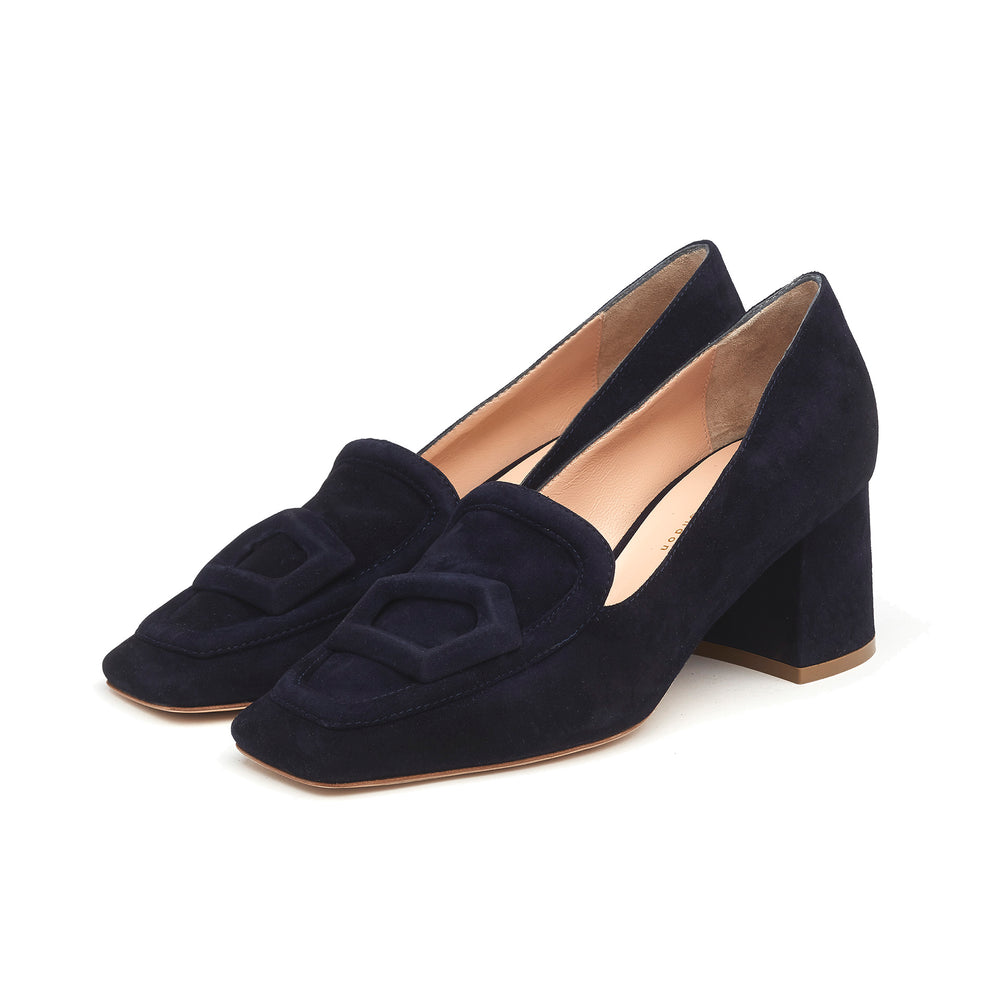 Introducing Nola, whose square toe and 60mm splayed heel give off a retro feel and make it perfect for running around the city all day. The upper is detailed with Rupert Sanderson’s covered cubic pebble, giving it a sophisticated look. Choose Nola in our new Notte suede for a timeless finish to your outfits.