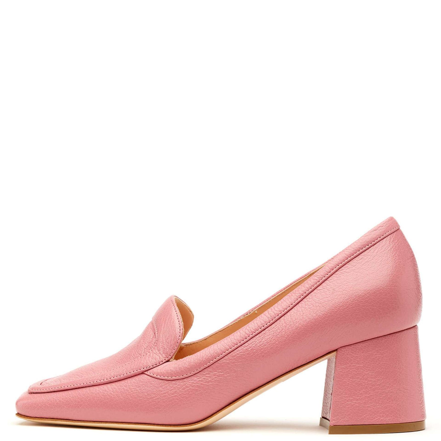 Rupert Sanderson Tulyar in Bazooka Pink Cracked Leather features soft, textured leather in a bold, vibrant hue. Set on a comfortable 60mm chunky heel, this playful yet polished silhouette makes a confident style statement.