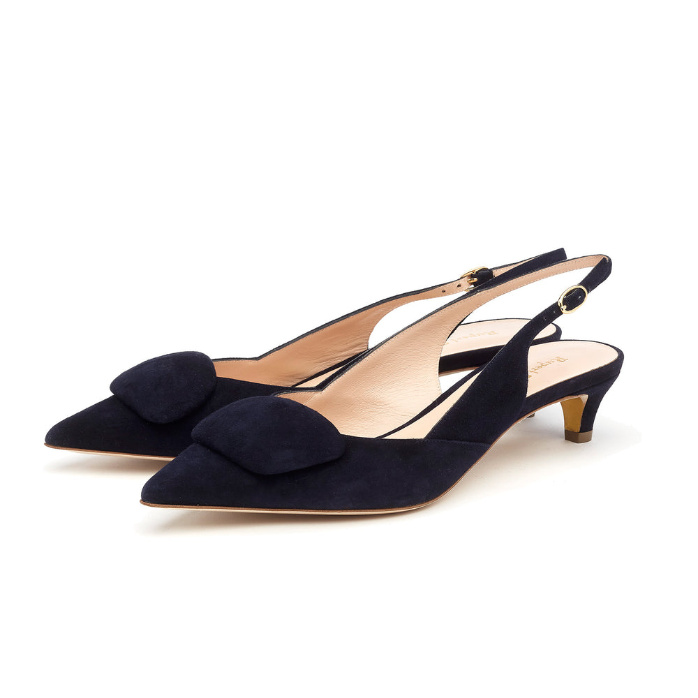 Our classic Misty slingback exudes understated elegance in Notte suede this season. The 30mm micro kitten heel complements a pointed toe, crowned with our tone-on-tone covered pebble. Pair it effortlessly with any outfit for a stylish yet timeless look.