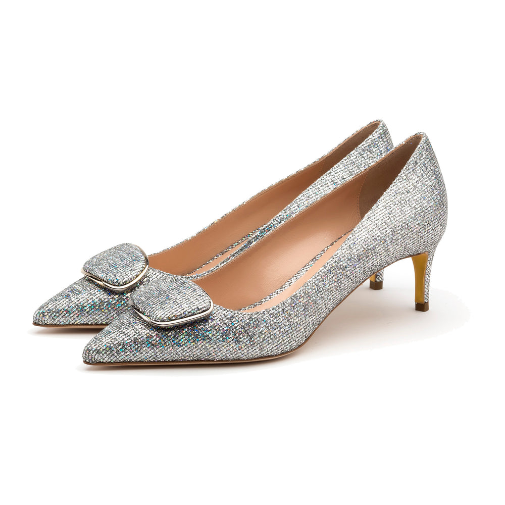 Rupert Sanderson Nora Double Pebble in Silver Lady with a 60mm heel